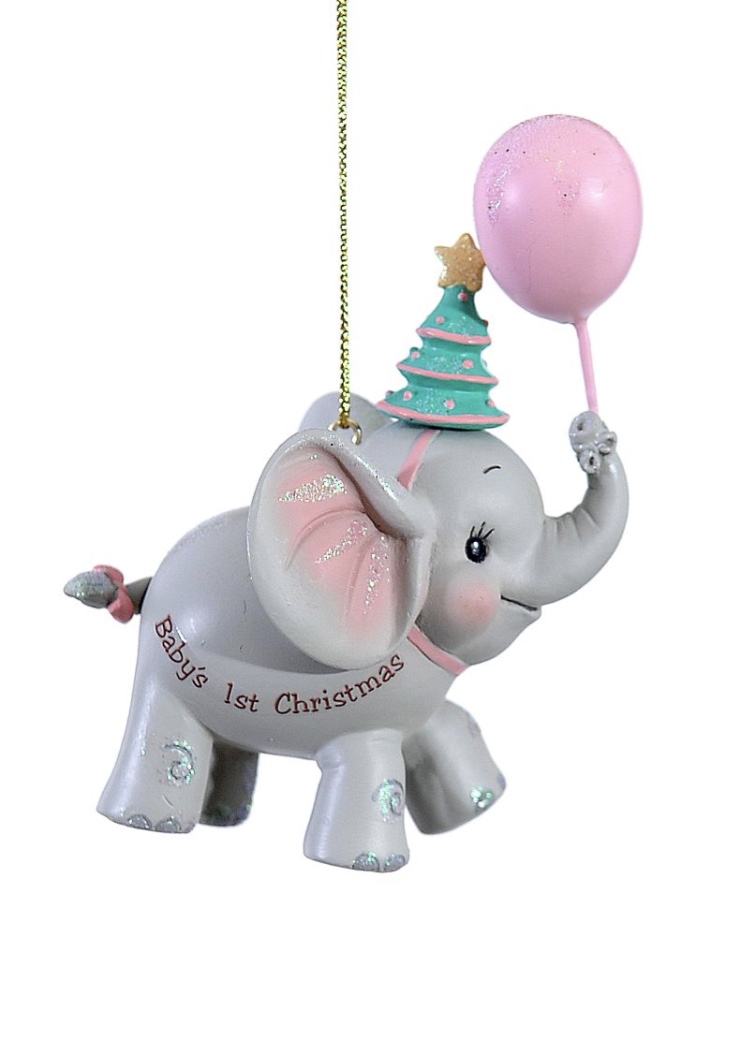 ΚΡΕΜΑΣΤΟ ΣΤΟΛΙΔΙ ΕΛΕΦΑΝΤΑΚΙ ΜΕ ΡΟΖ ΜΠΑΛΟΝΙ “BABY’S 1ST CHRISTMAS”