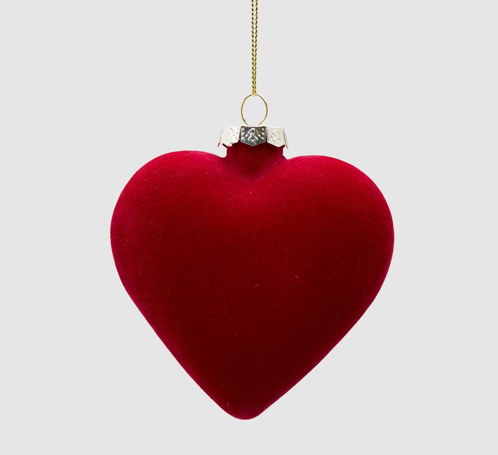 GLASS ORNAMENT HEART BURGUNDY VELVET