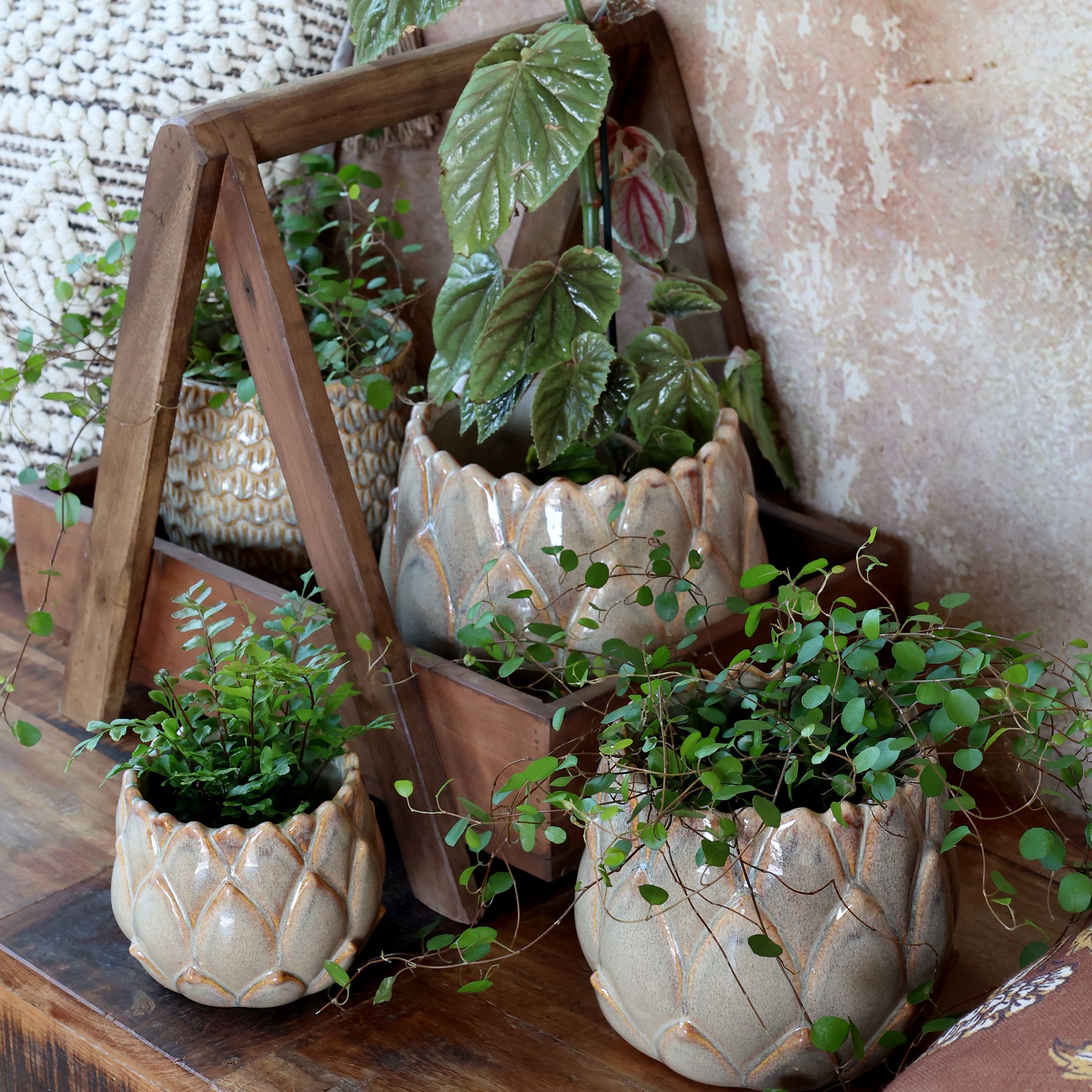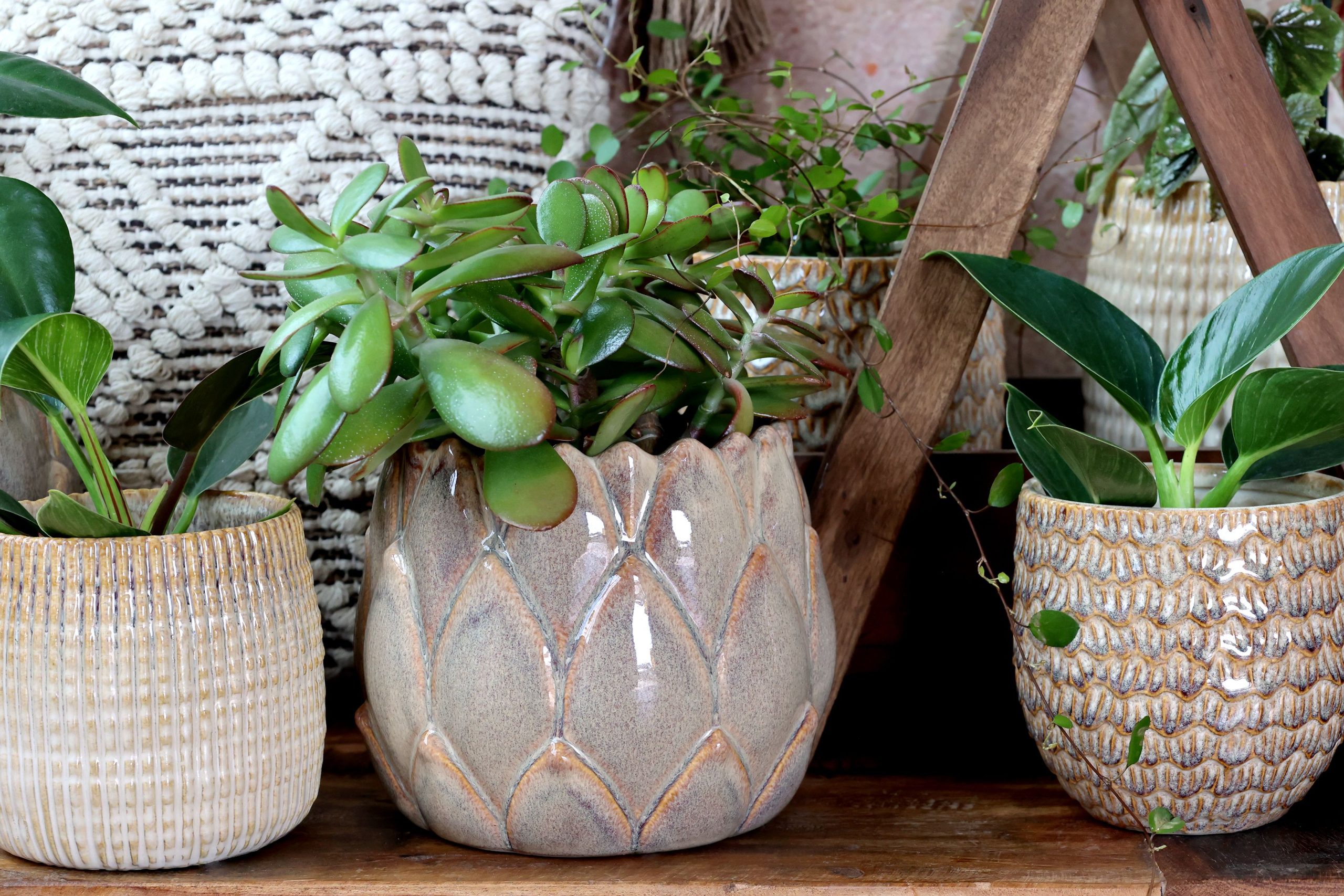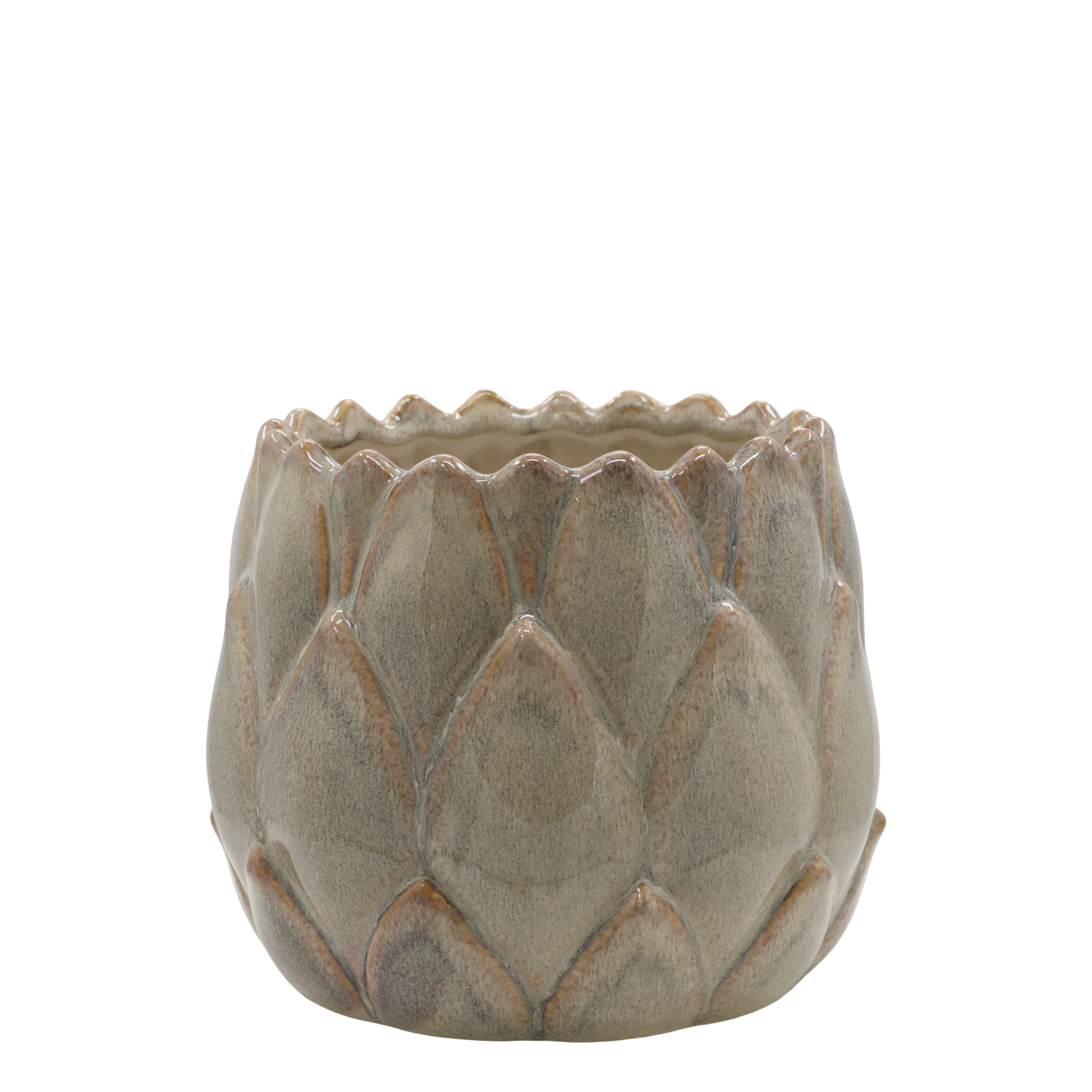 CERAMIC CACHEPOT BEIGE/LIGHT LATTE BROWN "PINECONE" - MEDIUM