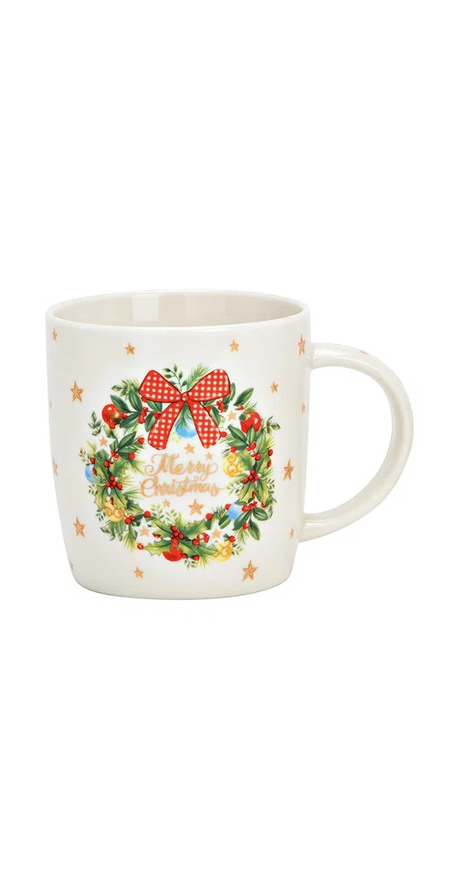 WHITE PORCELAIN MUG WITH WREATH PATTERN