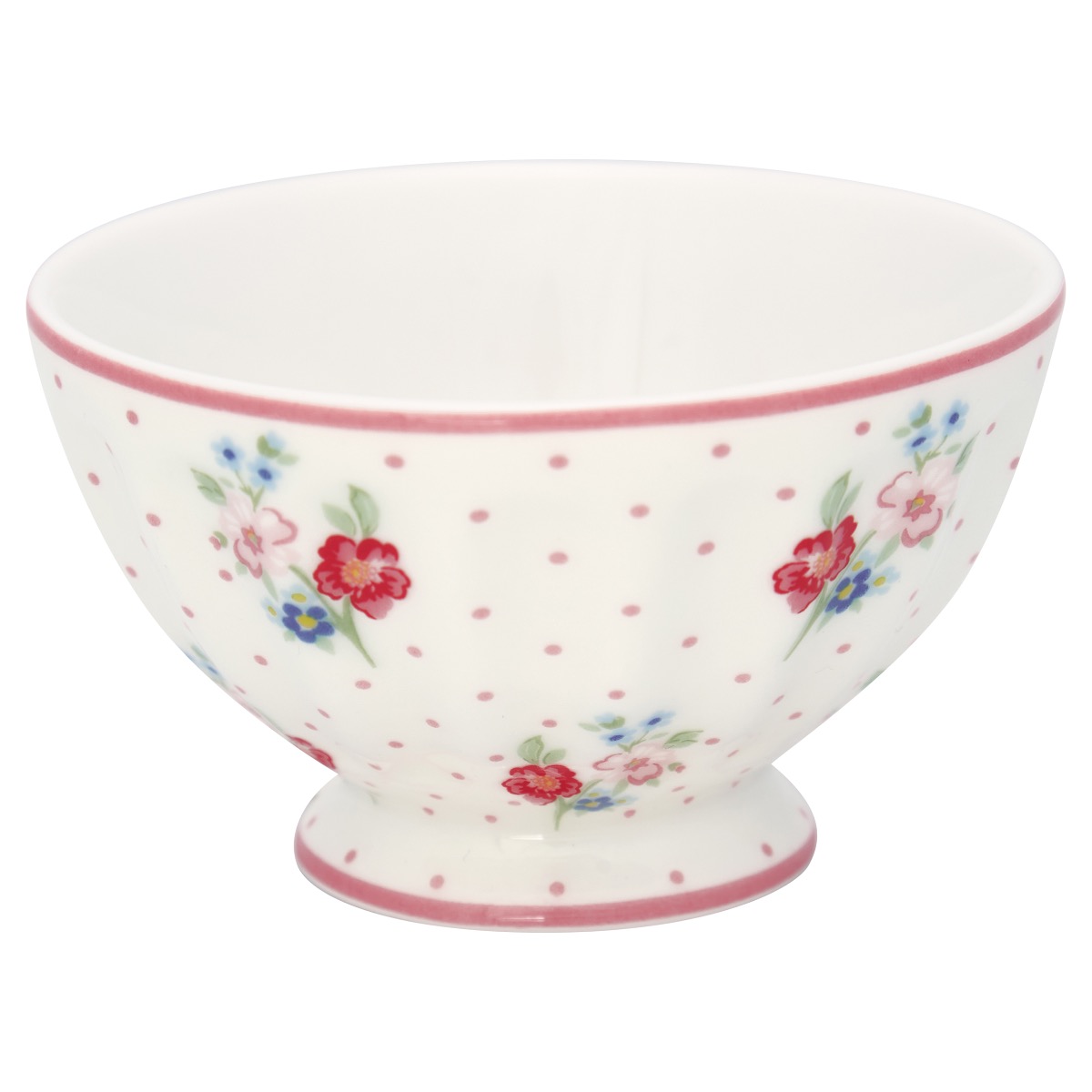 WHITE PORCELAIN BOWL WITH DOTS AND FLOWERS