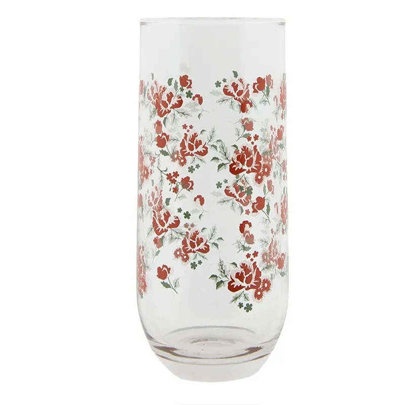 SET/6 PIECES OF WATER GLASSES WITH ORANGE FLOWERS PATTERN