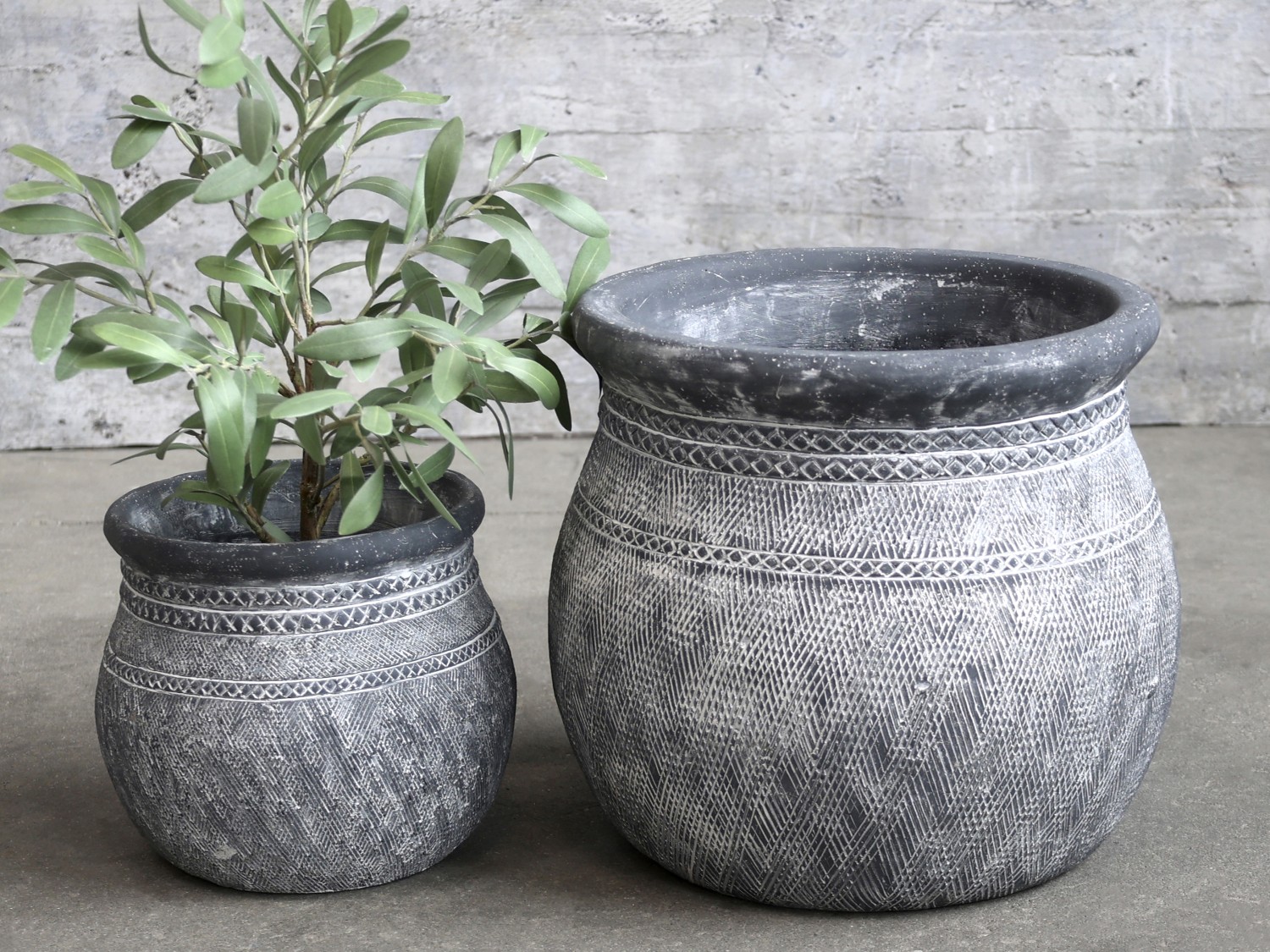 CEMENT CACHEPOT ANTIQUE GREY - LARGE