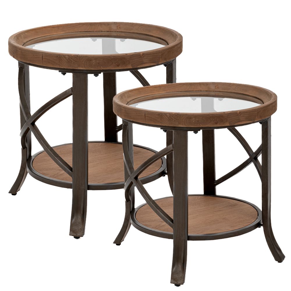 WOODEN ROUND TABLE WITH GLASS SURFACE - SMALL